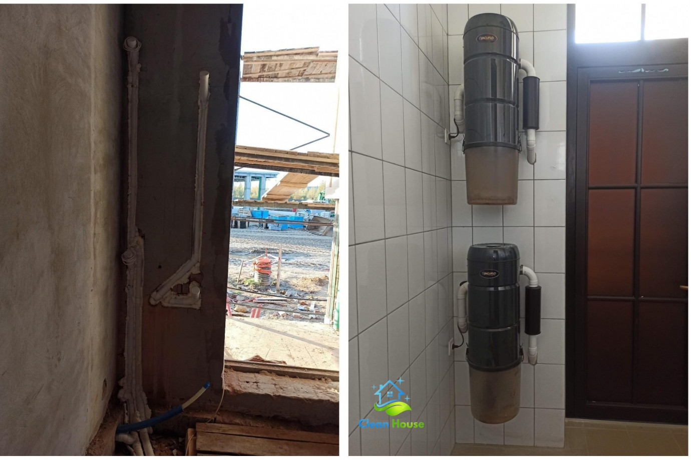 Как правило, на этом моменте заканчивается первый этап работ по установке централизованной системы пылеудаления. Можно продолжать строительство, заливать стяжку, штукатурить и шпатлевать стены и т.д. Второй этап монтажа встроенного пылесоса наступает после окончания отделки помещений. На покрашенную / оклеенную стену устанавливаются пневморозетки и аксессуары, вешается силовой агрегат системы.