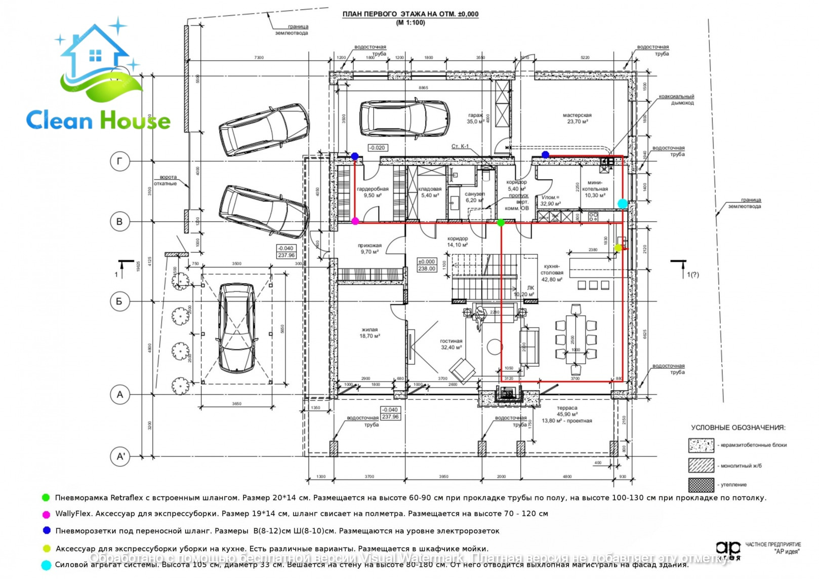 Стоить заметить, что в частном строительстве проект магистрали далеко не всегда обязателен. Если заказчик четко понимает, что встроенный пылесос спокойно расходится с другими магистралями, и его без проблем можно укладывать в оговоренной плоскости, то достаточно разметить только расположение пневмоточек. Монтажники сами определят наиболее оптимальную траекторию и уложат пневмотрассу без конфликтов с другими сетями.